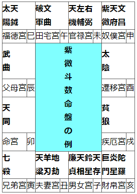 2.「紫微斗数」・・・・仙人が作った運命を事細かに看る占術宋代の陳希夷という仙人によって創始されたと伝えられる、四柱推命と双璧を成す推命術。吉凶の断に強い四柱推命に対して、紫微斗数は人の命運を12の事柄に分けて、細かな判断が出来る。特に紫微斗数は、配偶者の判断に優れているといわれる。